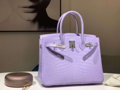 HERMES 爱马仕 带钻银扣 铂金包 Birkin 鳄鱼皮 纯手工 香芋紫 全套专柜包装