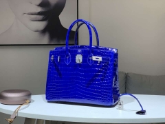 HERMES 爱马仕 铂金包 Birkin 鳄鱼皮 纯手工 电光蓝 银扣 全套专柜包装