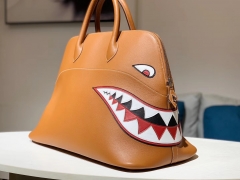 HERMES 爱马仕男包 林俊杰同款鲨鱼包 金棕色