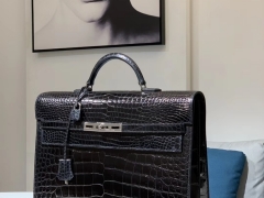 HERMES 爱马仕 神级别的亮光鳄鱼皮黑色 凯利公文包 价格小贵 可遇不可求
