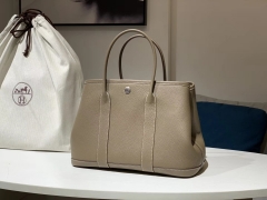 HERMES 爱马仕 Garden Party 花园包 Clemence 纯手工蜡线 大象灰