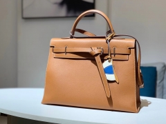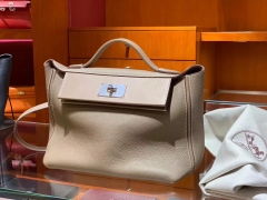 HERMES 爱马仕 休闲手提男包 Clemence皮 金棕色 35×29cm