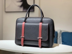 HERMES 爱马仕 手提邮差包 Clemence皮 黑色拼色红色 40×28×9