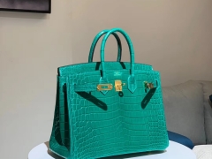 HERMES 爱马仕 铂金包 Birkin 鳄鱼皮 丝绒绿 金扣 配全套专柜原版包装