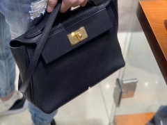 HERMES 爱马仕 手提邮差包 Clemence皮 黑色 40×28×9