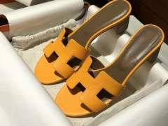 H经典中跟拖鞋 高端订制 独家品质 9v 太阳黄 jaune