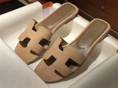 H经典蜥蜴皮拖鞋 高端订制 Ostrich leather 意大利树羔皮底 手工缝制工艺 cc14 杏色 beige