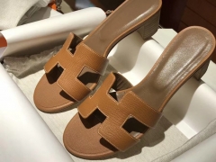 H经典中跟拖鞋 高端订制 独家品质 epsom皮 金棕色