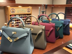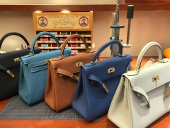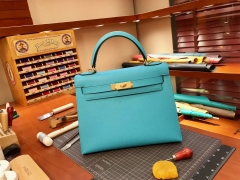 HERMES 爱马仕 Kelly 28CM 现货系列 配全套专柜原版包装 J7 亚麻蓝 Blue Lin/76 靛蓝色 黑蓝色 Blue Indigo/Z6孔雀绿 Malachite/ruby 宝石红 b5 /大象灰 ck18 etoupeKelly 28CM