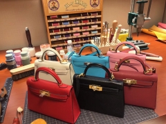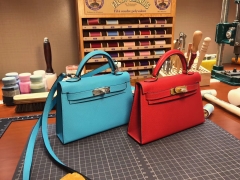 HERMES 爱马仕 Mini Kelly Pochette 22cm 迷你凯莉 MiniKelly 2 配全套专柜原版包装 奶昔白 CC10 Craie/S5 番茄红 Rouge Tomate/7F Blue Paon 孔雀蓝/黑 noir CK89/8w 新唇膏粉 新玫瑰粉 rose azalee/f5 新酒红 勃艮第酒红 bourgogneEpsom