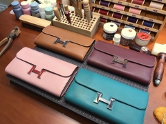 Constance Swift HERMES 爱马仕长款H扣钱包 Z6 Malachite 孔雀绿 /蜥蜴扣 3Q 水粉/F5 勃艮第酒红色 Bourgogne/CK37 金棕色 GoldConstance