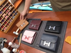 Constance Swift HERMES 爱马仕短款H扣钱包 BLACK 黑色/金棕 Gold CK37/3Q 水粉/F5 勃艮第酒红色 Bourgogne/76 靛蓝色 黑蓝色 Blue IndigoConstance