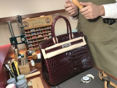 爱马仕 HERMES 铂金包 Birkin 25cm 配全套专柜原版包装 全球发售 鳄鱼 F5 勃艮第酒红色 Bourgogne