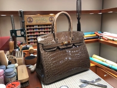 爱马仕 HERMES 铂金包 Birkin 25cm 配全套专柜原版包装 全球发售 鳄鱼 深啡色