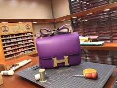 HERMES 爱马仕 空姐包 Constance p9 anemone 海葵紫 配全套专柜原版包装