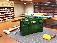 Mini Kelly Pochette 22cm 1代 晚宴包 手拿包 亮面鳄鱼 CK67 Vert Fonce 祖母绿 金扣