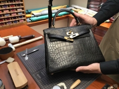 HERMES 爱马仕 BLACK 黑色 Kelly 28CM 哑光鳄鱼皮 纯手工蜡线 法国TR级别的进口皮料 配全套专柜包装发票