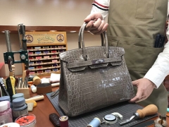 爱马仕 HERMES 铂金包 Birkin 25cm 配全套专柜原版包装 全球发售 鳄鱼 C81斑鸠灰