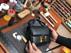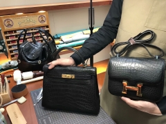 HERMES 爱马仕 空姐包 Constance BLACK 黑色 哑光鳄鱼皮 配全套专柜原版包装