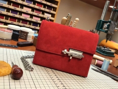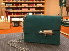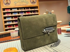 麂皮 翻毛皮 grizzly z6 新孔雀绿 malachita HERMES 爱马仕 手枪包 Verrou Chain