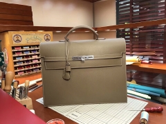 HERMES 爱马仕 男士公文包 大象灰 CK18 Etoupe 现货系列 配全套专柜原版包装 银扣