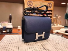 HERMES 爱马仕 空姐包 Constance 2z 午夜蓝 星空蓝 blue nuit 银扣