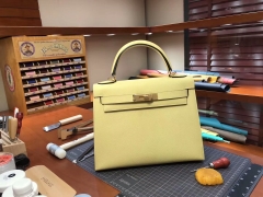 HERMES 爱马仕 C9 鹅蛋黄 Soufre Kelly 28CM 现货系列 配全套专柜原版包装 金扣