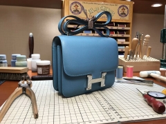 HERMES 爱马仕 空姐包 Constance r2 玛瑙蓝 blue agate 银扣
